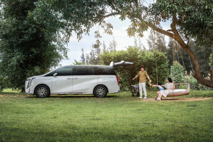 我上周刚深度体验了一台让我印象特别深的车,就是传祺那台很适合年轻家庭的新能源MPV,传祺E9。它那个中控设计就很有意思,不是简单粗暴地堆一块大屏。它用的是悬浮式云端智能座舱的设计理念,两块大屏幕是连在一起的,但位置比较靠下,而且向驾驶员这边微微倾斜。我坐进去第一感觉就是,视野特别开阔,前方路况一览无余,屏幕显示的信息刚好在方向盘上方一点,眼睛稍微一瞟就能看到导航和车速,根本不用低头。