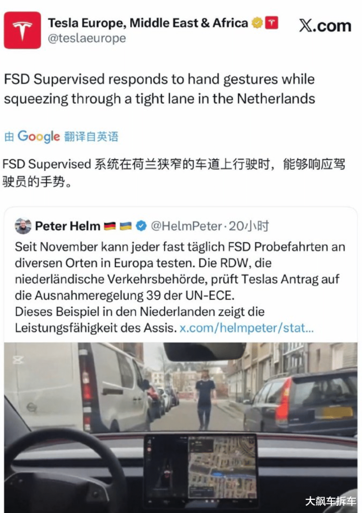 最近特斯拉又整了个大活儿,它的FSD现在居然能看懂人打的手势了!就在2月22日,特斯拉的欧洲官方号发了一段测试视频,我们先来看看。