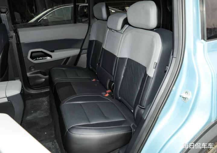 座舱内部,与福特烈马截然不同,采用了国内新能源车常见的简约风格,当然在空间与功能上还是很有看点。双色仪表台顶部有很好的环绕效果,出风口造型与台面也很协调。数字交互上,提供15.6英寸2.5K中控大屏、8.8英寸全液晶仪表屏,还有70英寸的超大HUD抬头显示和流媒体内后视镜。提供怀挡式电子档位,扶手台全部用来储物,双手机位带50W无线充,双杯架,还保留了实体控制旋钮,后方对开式扶手箱,高配车新内部是车载冰箱。