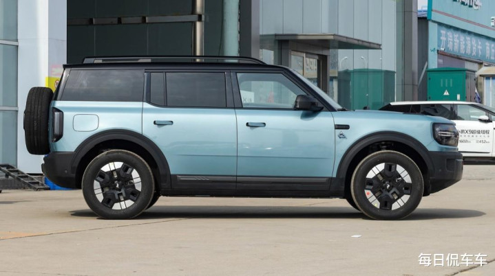 车身尺寸,长宽高分别为5025/1960/1825mm,轴距2950mm。相比福特烈马,轴距完全相同,长度增加了225mm、宽度缩小了30mm,高度降低了10mm,体量感依然很足,标准的中大型车水平。通过性参数,接近角30度、离去角32度,纵向通过角19度,最大涉水深度600mm,比硬派越野车稍微逊色,但比城市SUV强太多。虽然方盒子造型整体可发挥空间不大,但细节上还是有看点,车顶行李架必不可少,腰线在后端上扬,尾窗是平整化布置,底部从前到后都增加了比较粗的黑色塑料裙边,有很好的防擦效果。门把手为半边弹出式平整布置,车身干净整洁。